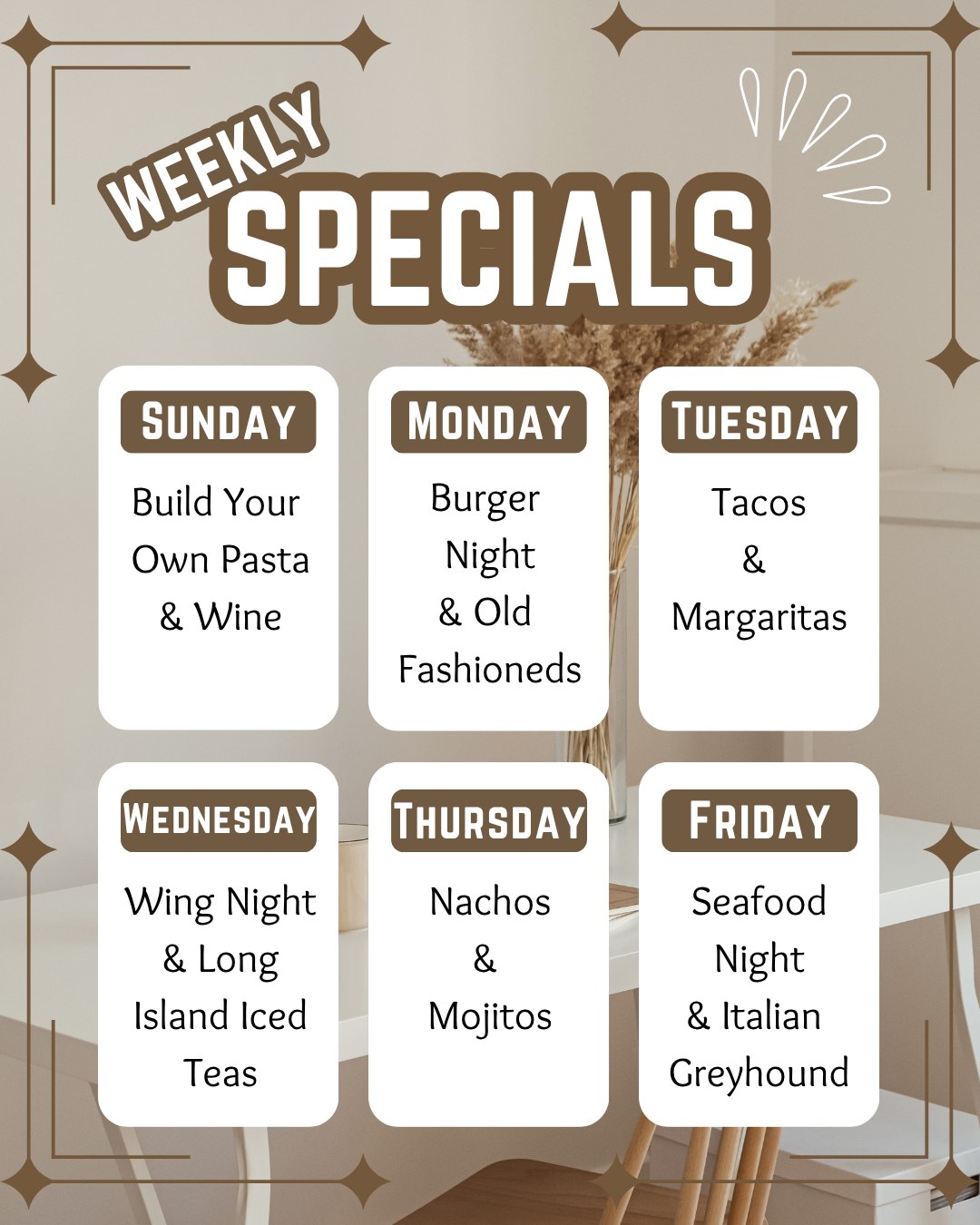 Follow us on Facebook to stay update with Weekly Specials, something different and exciting each week!